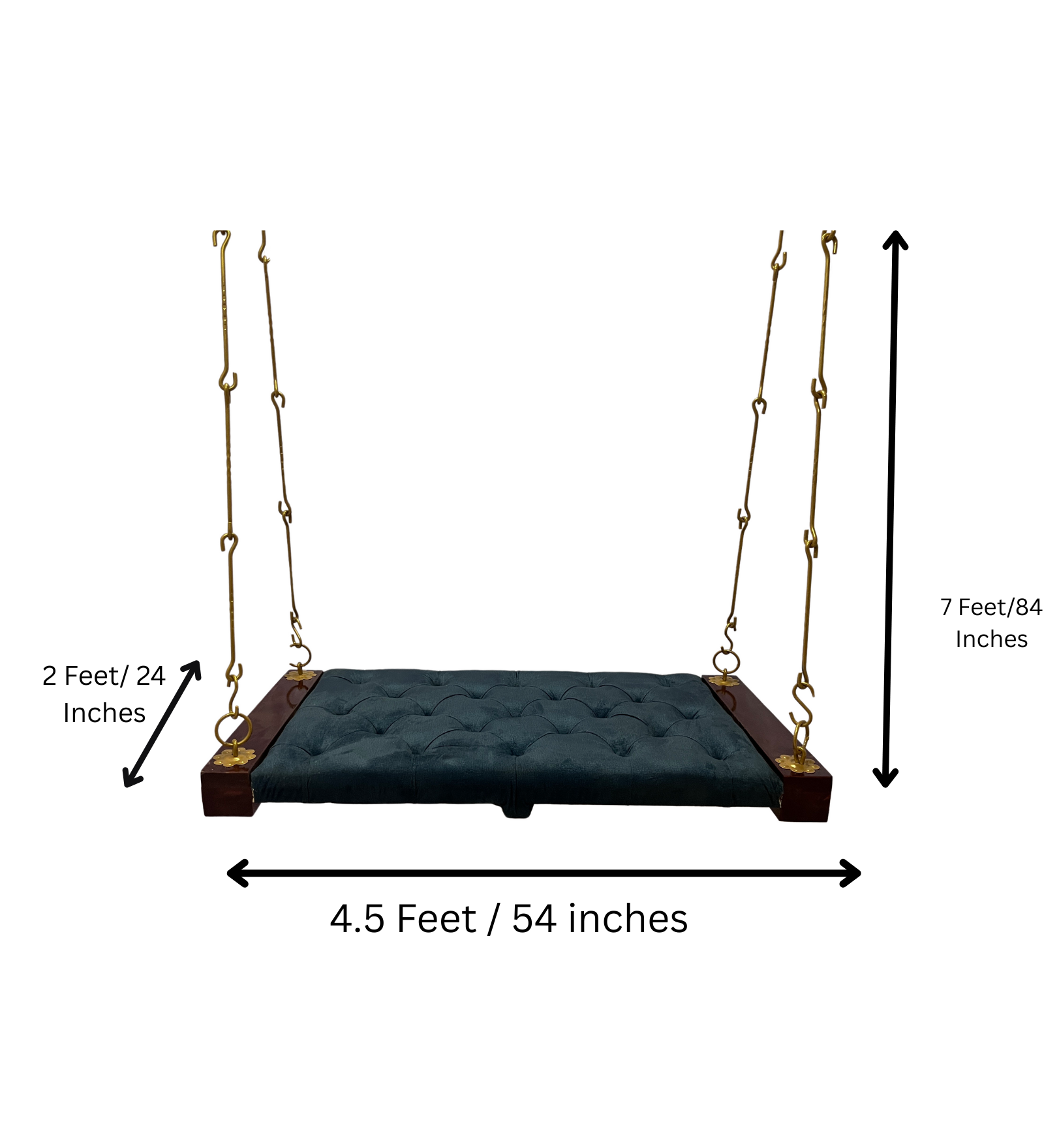 Introducing the epitome of comfort and elegance, our wooden swing with built-in cushion is a timeless addition to any indoor or outdoor space. Crafted with the finest quality wood and upholstered in a luxurious blue colour fabric, this swing seamlessly blends sophistication with relaxation.