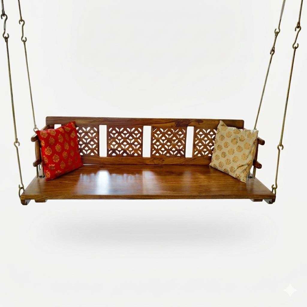 Jairi Traders Wooden Swing Size 4×2 feet inbuild Sofa White Colour