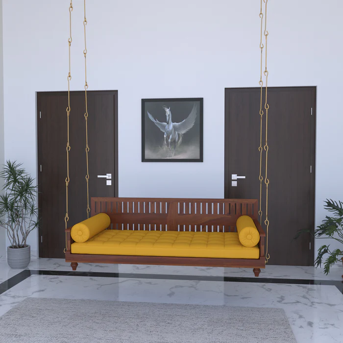 CARVING HAND SUPPORT AND BACK SWING BRASS COATED WITH COMPLIMENTARY SEAT YELLOW COLOUR